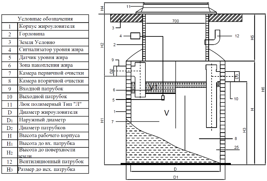 H6- Общая высота жироуловителя в мм.
